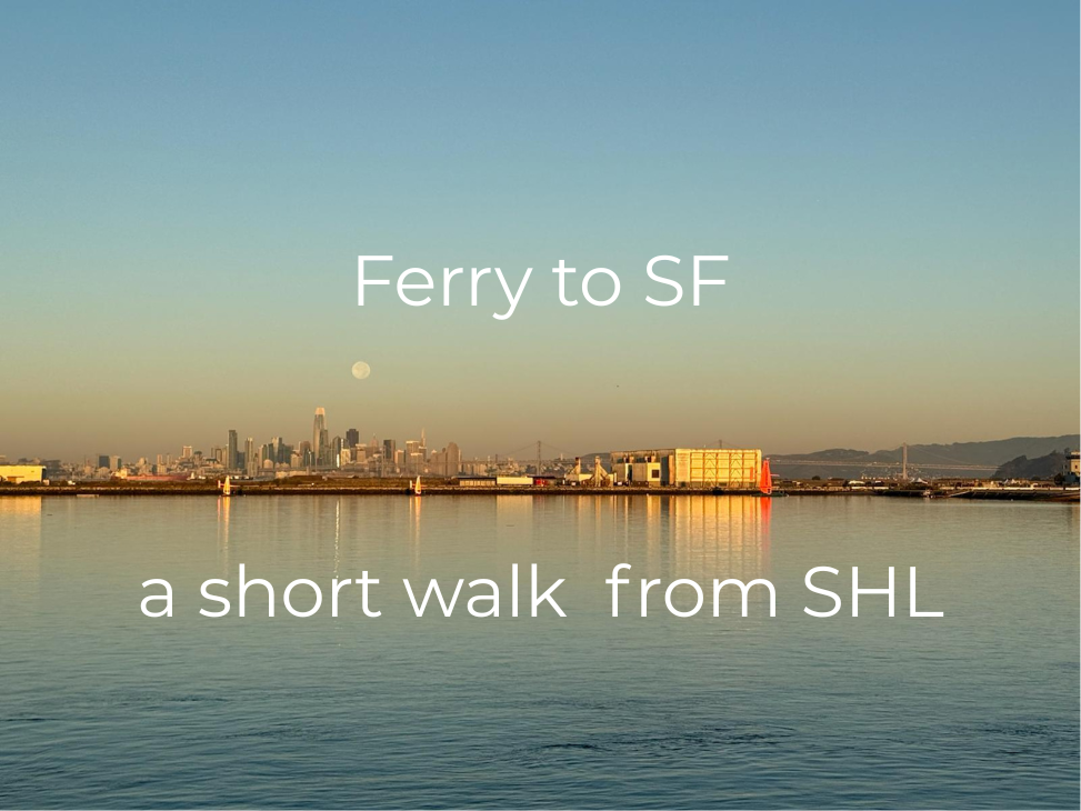 - Mobile venue: Alameda–San Francisco ferry for themed breakout circles and 1:1s during a Saturday and/or Sunday mid‑day excursion.